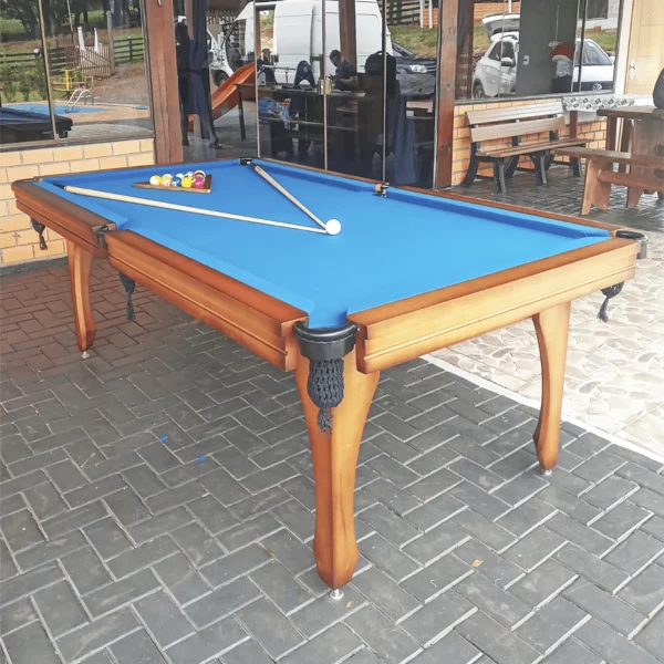 Produzida em madeira maciça de Eucalipto, com campo em Pedra Ardósia Gold Line e acabamentos premium, oferece resistência, estabilidade e uma experiência de jogo impecável.